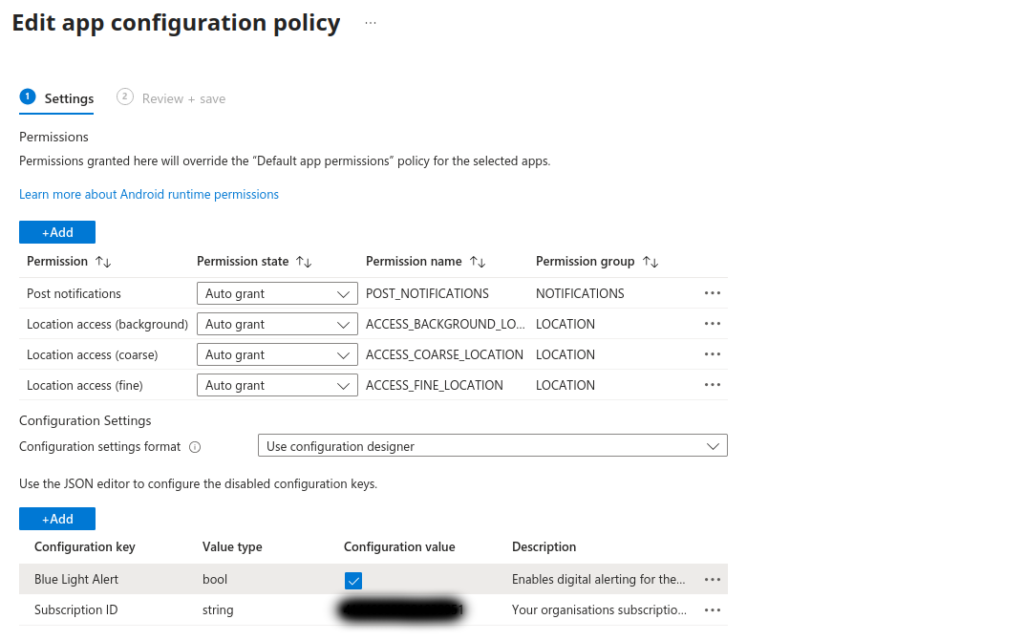 - Using the configuration designer, add the Configuration key ‘Subscription ID’
