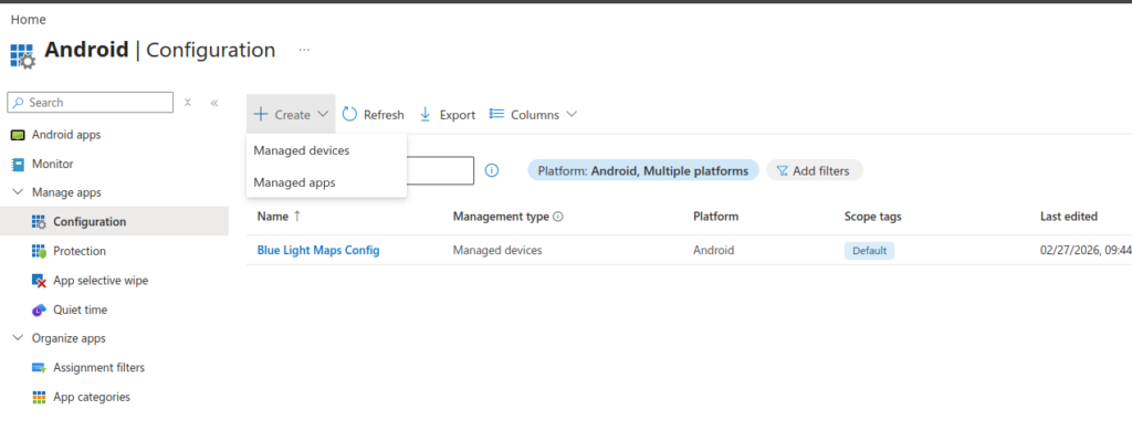 To license the app correctly, you’ll need to create an App Configuration in the InTune portal.